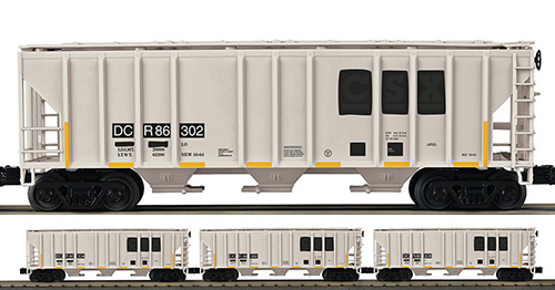 October 28, 2025 - M.T.H. Electric Trains has announced an exclusive and uncataloged O Gauge RailKing 3-Car Ps-2 Discharge Hopper Set in unique Delmarva Central Railroad livery for M.T.H. Authorized Retailer Corddry Crossing Hobbies of Snow Hill, Maryland. The three-car set features individual car numbers and will be available in extremely limited quantities beginning in December 2025. Item No. 30-70162 Delmarva Central Railroad 3-Car Ps-2 Discharge Hopper Set  ABOUT THE RAILKING O GAUGE RAPID DISCHARGE HOPPER Although covered hoppers had achieved widespread use by the 1950s, it wasn’t until the following decade that they began to carry North America’s grain harvest. Prior to the mid-1960s, U.S. and Canadian farmers had sent their wheat and other grains to market in 40’ box cars. The crop was packed in sacks or in cars with disposable grain doors that covered most of the door opening and turned the car into a rolling grain bin. Either way, loading and unloading was labor-intensive and time-consuming. Pullman-Standard’s introduction of the PS-2CD covered hopper in 1962 helped change grain shipping forever. Whereas the original PS-2 introduced 10 years earlier had been designed for denser cargos and held about 2,000 cubic feet, the PS-2CD was built for lighter-weight commodities like grain and had twice the volume. The "CD" stood for "center discharge," another innovation. Each of the car’s three hoppers had a single, large discharge door centered under the car. Compared with earlier cars that had two doors per hopper, one on either side of the car’s center support beam (center sill), the PS-2CD was faster and easier to unload. The initial PS-2CD sold reasonably well, but sales really took off after a slightly larger 4,427 cubic foot, 100-ton version — the prototype for this RailKing model — was introduced in 1964. Trough hatches in the car’s roof, replacing the round hatches common on earlier covered hoppers, made the PS-2CD 4427 faster to load as well. In 1966, the car’s design was altered slightly, with the bottom of the sides being moved upward, exposing more of the hopper bottoms (a replica of the later version is offered in our Premier line). Modelers generally refer to the pre-1966 cars as low sides and the later cars as high sides. In all, more than 19,000 PS-2CD 4427 covered hoppers were sold to a large number of railroads and many private owners. By the 1980s, the PS-2CD, along with covered grain hoppers from other builders, had spelled the end of the 40’ box car in grain service. And in addition to grain, PS-2CDs found work hauling a number of other light to medium-density dry commodities, including salt, clay, chemicals, phosphates and other minerals, and carborundum, an abrasive grit also known as silicon carbide. Order directly from: Corddry Crossing Hobbies www.Corddry-crossing-hobbies.square.site  |