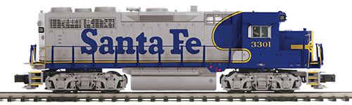 November 30, 2025 - M.T.H. Electric Trains has announced an exclusive and uncataloged Premier O Scale GP-35 Diesel Locomotive in Santa Fe livery for exclusive distribution for M.T.H. Authorized Retailer The Train Loft. The locomotive will be available in two different cab numbers in very limited quantities on a first-come, first-served basis beginning in February 2026. Item No. 20-22114-1 Santa Fe GP-35 Low Hood Diesel Engine w/Proto-Sound 3.0 Item No. 20-22115-1 Santa Fe GP-35 Low Hood Diesel Engine w/Proto-Sound 3.0 ABOUT THE PREMIER GP-35 DIESEL LOCOMOTIVE Produced from 1963 to 1966, the GP35, along with its six-axle SD35 sibling, marked both an end and a beginning. They were the last road diesels to use the EMD 567 motor that had powered switchers, F-units, and Geeps since 1939 (so named because each cylinder displaced 567 cubic inches). For the horsepower race of the 1960s, EMD tweaked the 567 to a turbocharged V-16 delivering 2500 hp. That was it for the 567, however, and in 1966 the baton was passed to the more powerful model 645. But while the "35 line" diesels ushered out an old motor, they inaugurated a new look. Their angled cab roofs and the clean, squared-off lines of their car bodies established the look of EMD power for the next three decades. Introduced to compete with General Electric's landmark U25B, which had ushered in the second generation of diesel power, the GP35 outsold the "U-Boat" nearly three to one. There was a strong market for new power in the mid-1960s because the first-generation diesels that had vanquished steam were wearing out. While first-generation rosters had often been a hodgepodge of manufacturers and models as railroads experimented with the new technology, by 1960 Alco, EMD, and GE were the only manufacturers left standing - and Alco would soon throw in the towel. As a result, virtually every major U.S. railroad became a GP35 customer, and over 1300 engines were sold in the United States, Canada, and Mexico. While our Premier model is not the first O gauge version of this second-generation pioneer, it offers the best combination of detail, realism, and performance of any 1/48 scale GP35. Added-on detail parts include windshield wipers, metal see-thru body grilles, lift rings, metal grab irons and handrails, see-thru rooftop fan housings, and brake cylinders, air pipes, and swing hangers on our super-detailed Blomberg trucks. And in command mode with the DCS system, you can create a lashup combining one or more GP35s with other Proto-Sound 3.0 or Proto-Sound 2.0 first- or second-generation power, and run them from a single throttle just like the prototype. EXCLUSIVELY AVAILABLE THRU The Train Loft |