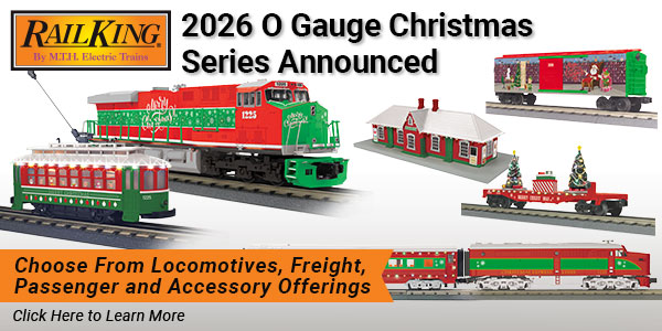 M.T.H. Electric Trains will be releasing a slew of limited-edition North Pole releases beginning this Fall including two Diesel locomotives with matching caboose and passenger cars, Bump-n-Go Trolley, several complementing box cars, Gondolas with Lighted Snowmen, and Flat Car with Santa Sleigh. All are a great way to add to your own holiday collection of past North Pole cars and sets. Each of these offerings is expected to begin shipping to M.T.H. Authorized Retailers in October 2026. Check out each of these offerings HERE. These items are available to order from your local M.T.H. Authorized Retailer. M.T.H. Electric Trains will be releasing several Premier Line O Scale limited-edition Christmas releases beginning this Fall. These colorful locomotives and complementing box cars are a great way to add to create a Premier Line Christmas tradition on your model railroad. Each of these offerings is expected to begin shipping to M.T.H. Authorized Retailers in October 2026. Check out each of these offerings HERE. These items are available to order from your local M.T.H. Authorized Retailer. Check out each of these offerings HERE. These items are available to order from your local M.T.H. Authorized Retailer. |