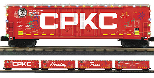 October 24, 2025 - M.T.H. Electric Trains is producing an uncataloged RailKing O Gauge 4-Car 50’ Double Door Plugged Boxcar Set in special Canadian Pacific Kansas City holiday livery for M.T.H. Authorized Retailers E-Z Catch and Dixie Union Station. The cars will come equipped with BodyClad LED lighting in Christmas colors and feature different graphics on each side of the car. Available in four car numbers and limited in production, the cars are packaged individually but sold as a 4-pack and are expected to arrive in November 2025. Item No. 30-70155 Canadian Pacific Kansas City (Mural) 4-Car 50’ Double Door Plugged Boxcar Set With LED Lights Set ABOUT THE RAILKING 50’ DOUBLE DOOR PLUGGED BOXCAR While usually referred to as an insulated boxcar, the prototype for this car, according to the Association of American Railroads (AAR), is technically a bunkerless refrigerator car, class RBL. Built by Evans Products Company at Blue Island, Illinois from 1969-1977, these cars were designed for shipments that need protection from temperature extremes but do not require refrigeration. They have hardwood floors and at least 3" of insulation in their sides, ends and roofs. Produce is a common cargo. The cars’ length and wide 16’ door openings have also made them popular with plywood and lumber shippers. In contrast with typical sliding doors, the plug doors on these cars are pulled into the door opening when the door is latched. This produces a nearly watertight and airtight seal, protecting the load and helping to keep a more constant inside temperature. A cushioned underframe also helps protect the load from shock, hence the "DF" (for "damage free") logo found on some of these cars. Evans Products built nearly 4.400 of these cars, selling or leasing them to a large number of North American railroads and private owners. Although the last of these cars are nearing the end of their allowable 40-year service life, they can still be found in U.S. freight trains today. Order directly from: E-Z Catch Train Shop - OR - Dixie Union Station110 W. Main Street Mason, OH 45040 513-459-0460 http://www.dixieunionstation.com rockylane@dixieunionstation.net  |