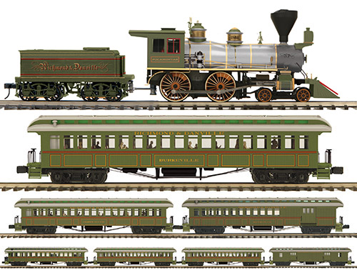 March 31, 2026 - M.T.H. Electric Trains has announced an exclusive and uncataloged Premier O Scale 4-4-0 American Steam Locomotive Richmond & Danville livery for M.T.H. Authorized Retailer The Train Loft. The locomotive will be sold along with 64' Woodside Passenger Cars in the same livery. Both locomotives and cars will be packaged separately but sold by Train Loft in extremely limited quantities as a complete set beginning in May 2026. 20-30117-1 Richmond & Danville 4-4-0 American Steam Engine w/Proto-Sound 3.0 (70" Hi-Rail Wheels) Early Order SET Price: $1999.95(plus freight) ABOUT THE PREMIER 4-4-0 AMERICAN STEAM LOCOMOTIVE In the late 19th century, railroading was the premier high-tech industry, and world's fairs were the place to compete for bragging rights. So as the 1893 World's Columbian Exposition approached, the New York Central & Hudson River Railroad prepared to grab the title of fastest vehicle on earth. In great secrecy at the railroad's West Albany shops, master mechanic William Buchanan directed the construction of a hot-rod 4-4-0 American-type with monstrous drivers more than seven feet in diameter. Named simply "999," the engine exuded class. Her hand-polished Russian iron boiler was highlighted with shining brass trim and piping; her gleaming cab was fashioned of mahogany and maple; and the name of her train was emblazoned boldly on her tender in two-and-a-half-foot-high gold leaf lettering: "Empire State Express." On May 9, 1893, Buchanan turned his creation over to engineer Charlie Hogan to see what she could do. Son of a railroad foreman, Hogan had begun his career with the New York Central at age 14, as a water boy, and would later rise to superintendent of motive power. On that fine May day, he took control of the 999 in Rochester, New York, and opened the throttle for the run to Buffalo. Calculating his time and distance, railroad officials estimated he had reached 102 miles per hour. They decided to try for an official record the next day. So it was that on May 10, the 999 headed toward Buffalo again, this time with a cargo of railroad officials and newspaper reporters. With fireman Al Elliot madly shoveling coal into the firebox, engineer Hogan opened the throttle all the way. Using stopwatches and counting mileposts, observers on the train determined the 999 had blasted through the Village of Crittenden at 112.5 miles per hour. OPERATING FEATURES